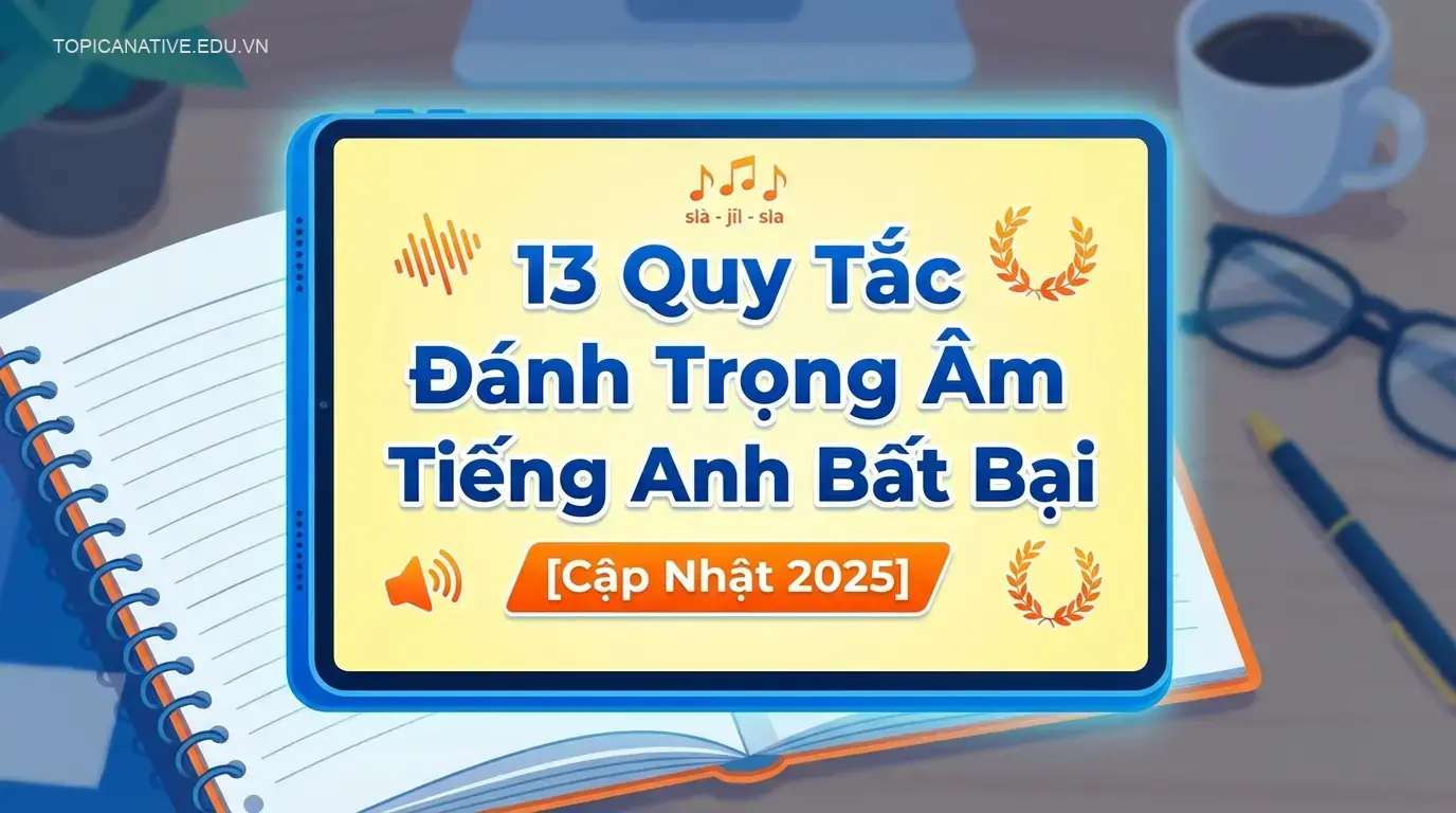 Trọng âm trong tiếng Anh (word stress) là việc nhấn mạnh một âm tiết nhất định trong một từ, khiến âm tiết đó được phát âm to hơn, dài hơn và ở cao độ khác biệt so với các âm tiết còn lại. Nắm vững các quy tắc đánh trọng âm không chỉ giúp bạn cải thiện phát âm chuẩn xác mà còn là chìa khóa để giao tiếp tự nhiên và hiệu quả, tránh những hiểu lầm không đáng có trong môi trường học thuật lẫn công việc. Bài viết này sẽ hệ thống hóa 13 quy tắc trọng âm cốt lõi, cùng các phương pháp luyện tập, công cụ hỗ trợ và ứng dụng thực tiễn để bạn tự tin làm chủ kỹ năng quan trọng này.