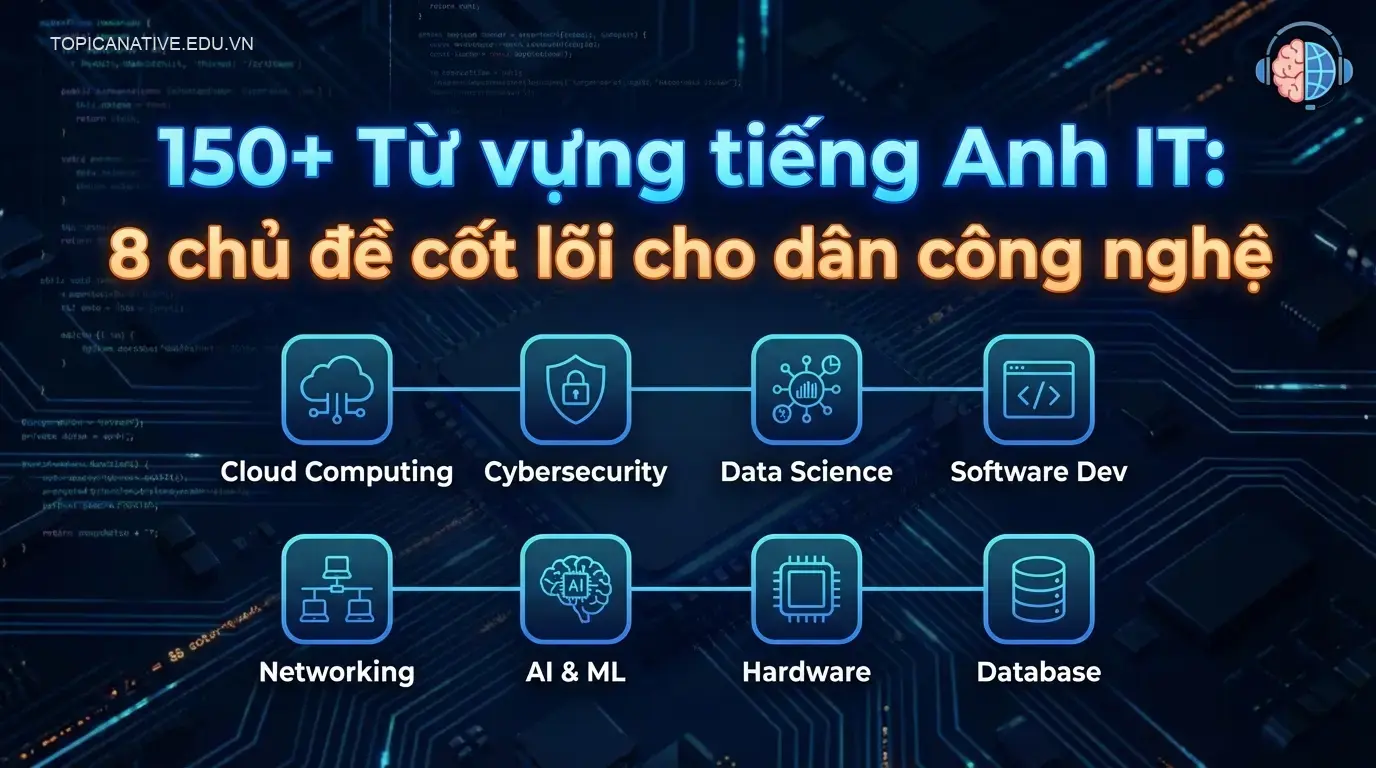 Bất kỳ chuyên gia công nghệ nào cũng cần một nền tảng từ vựng tiếng Anh vững chắc để tiếp cận tài liệu, giao tiếp trong các dự án quốc tế và cập nhật xu hướng toàn cầu. Bài viết này hệ thống hóa hơn 150 thuật ngữ IT cốt lõi qua 8 chủ đề quan trọng, từ phần cứng, phần mềm, an ninh mạng đến quản lý dự án. Thông qua đó, bài viết cung cấp một lộ trình học tập toàn diện, các phương pháp ghi nhớ hiệu quả, và cách ứng dụng từ vựng vào công việc thực tế, giúp bạn tự tin làm chủ ngôn ngữ chuyên ngành.