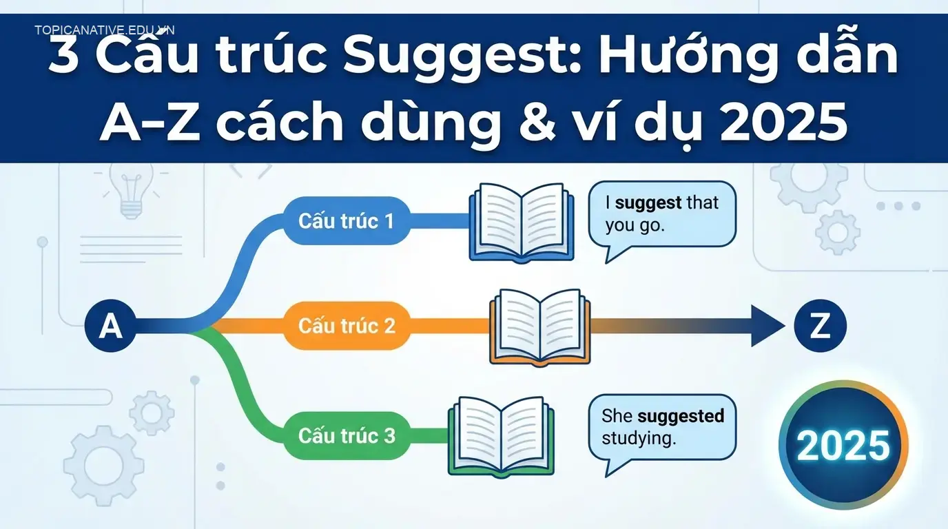 Động từ “Suggest” là một công cụ giao tiếp thiết yếu trong tiếng Anh, được dùng để đề xuất ý tưởng, đưa ra lời khuyên hoặc gợi ý một phương án. Ba cấu trúc Suggest cốt lõi bao gồm Suggest + V-ing cho gợi ý chung, Suggest + (that) + S + V cho đề xuất hướng đến đối tượng cụ thể và Suggest + Noun để giới thiệu một sự vật. Việc sử dụng chính xác các cấu trúc này giúp bạn diễn đạt ý tưởng một cách tinh tế, phù hợp với từng ngữ cảnh từ thân mật đến trang trọng trong công việc và cuộc sống. Bài viết này sẽ phân tích chi tiết từng cấu trúc, so sánh sự khác biệt, chỉ ra lỗi sai thường gặp và cung cấp bài tập vận dụng để bạn hoàn toàn làm chủ động từ này.