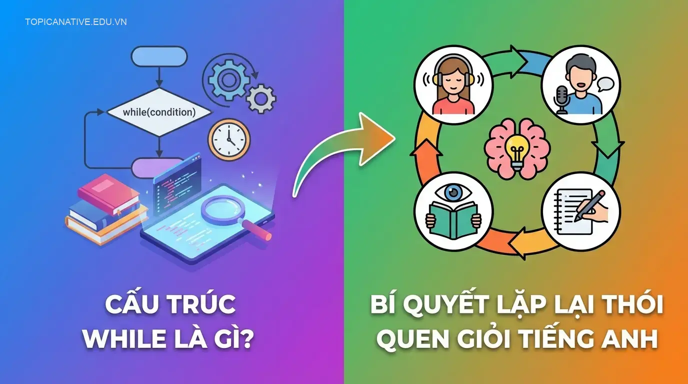 Cấu trúc vòng lặp while trong lập trình là một khái niệm nền tảng, có thể được áp dụng một cách hiệu quả để xây dựng và duy trì thói quen học tiếng Anh bền vững. Phương pháp này hoạt động bằng cách thiết lập một chu trình lặp lại có điều kiện, bao gồm mục tiêu rõ ràng, hành động nhất quán và cơ chế theo dõi tiến độ, giúp người học phá vỡ sự trì hoãn và tiến bộ một cách có hệ thống. Bài viết này sẽ phân tích chi tiết cách vận dụng tư duy lập trình while để tạo ra một mô hình học tập hiệu quả, so sánh với các phương pháp khác và đưa ra giải pháp để tối ưu hóa quá trình luyện tập của bạn.
