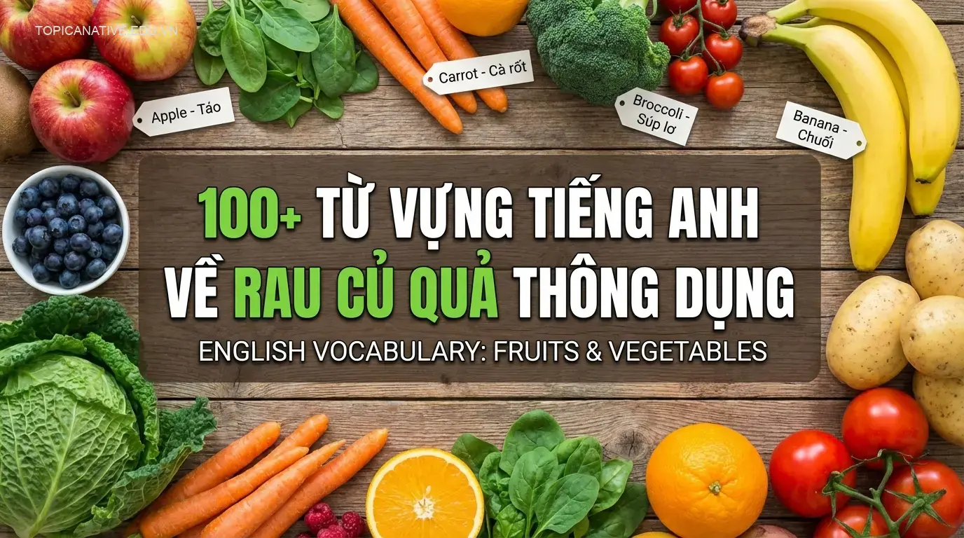 Bài viết này tổng hợp hơn 100 từ vựng tiếng Anh thông dụng nhất về các loại rau củ quả, được phân loại thành 8 nhóm cụ thể để bạn dễ dàng tra cứu và ghi nhớ. Việc nắm vững vốn từ này là nền tảng thiết yếu cho giao tiếp hàng ngày, giúp bạn tự tin đọc công thức nấu ăn, mua sắm tại siêu thị nước ngoài hay gọi món trong nhà hàng. Bài viết không chỉ cung cấp danh sách từ mà còn giải thích cách phân biệt các loại dễ nhầm lẫn, hướng dẫn phát âm chuẩn, và giới thiệu các mẫu câu ứng dụng thực tế.